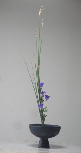 フトイ トルコキキョウの二種生けを活けました 花と短歌と竹原と